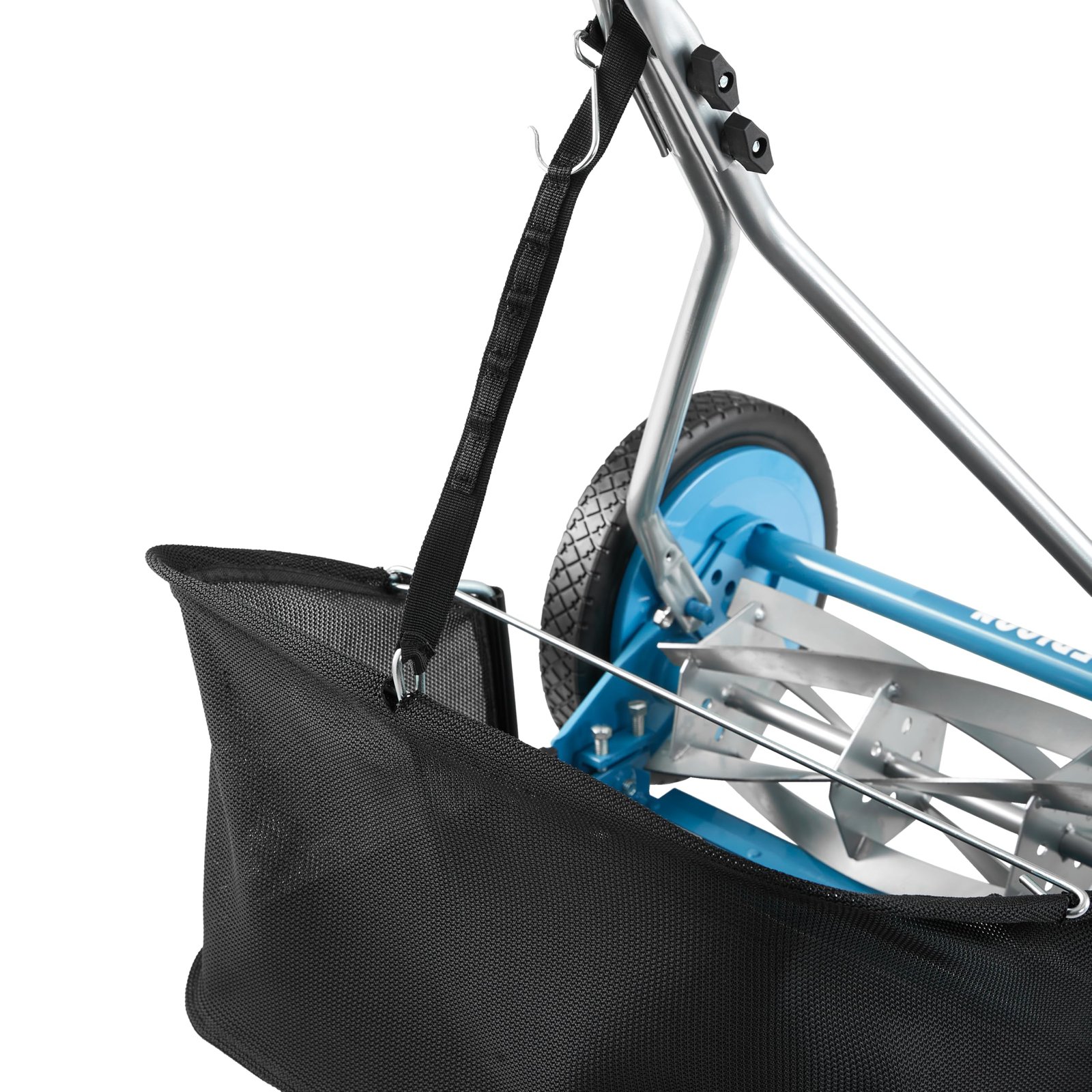 took me a a little longer than i want to admit to figure out the bagger but this is great. i have a small area of my yard that is fenced in that my ride on mower couldn't get to and did not want to deal with another battery or gas powered tool in my garage so i decided to go old school. its light enough to lift over the fence when i need it and easy to push around. bonus points that the color is super cute!