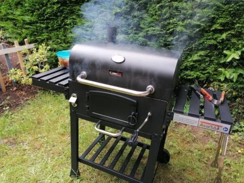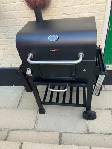 CosmoGrill Outdoor XL Charcoal Smoker BBQ Grill – Adjustable Charcoal Pan, Built-in Thermometer, 2 Side Tables, Chimney & Wheels – Portable Garden Barbecue Smoker photo review