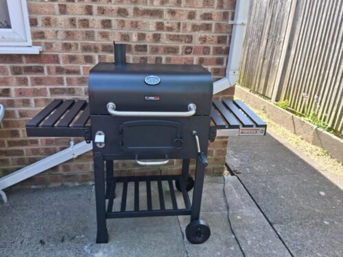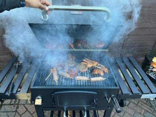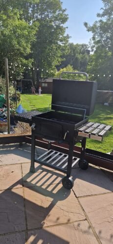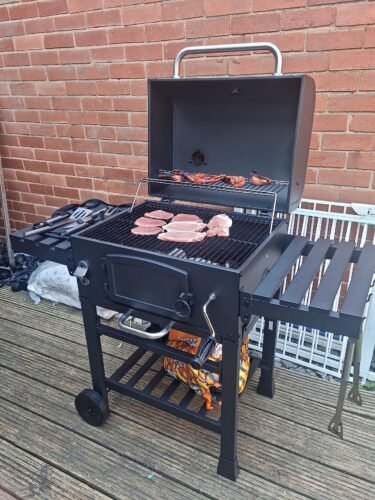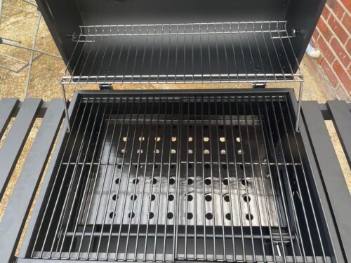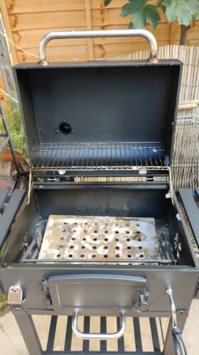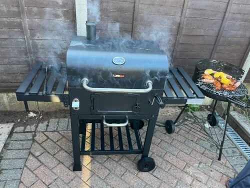 Brilliant barbecue, takes some time to put together and there is some room for error but ours was really well packaged and most instructions were very clear. Once finished it is super easy to light and the lever to bring your coals up or lower them makes outdoor cooking a breeze. I have easily managed to get it scolding hot (>250c) when I used it to make pizza but most times I can easily lower the coals and still quickly prepare our food. Have used it for smoking trout as well and whilst the result was great I should have waited a bit longer before putting the soaked wood chips and fish on there as there still was too much heat coming from below which meant the fish were cooked in under an hour. This is a problem that relates to my inexperience with ‘hot-smoking’ and is not a poor reflection on the bbq. I wholeheartedly recommend this outdoor kitchen to anyone that loves to grill and wants to experiment with dishes that are a little more exciting than burgers and sausages. Flame grill a tomahawk, smoke a brisket, beercan or spatchcock chicken, this grill can do it all. Do buy the outdoor cover if you can’t wheel it indoors, definitely worth it too.
