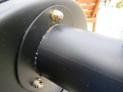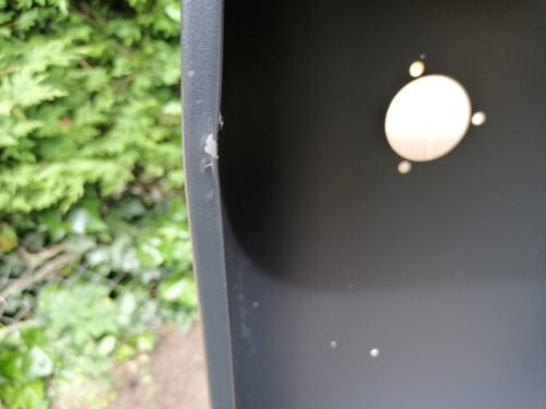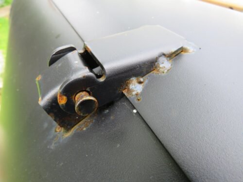You would think for the price the manufacturer would give it a decent coat of paint. The whole of the back of the thing is breaking out in rust spots, as are the areas around the welds on the hinges. The chromed dome nuts on the chimney are also turning to rust. What a pity there is no tailor-made cover available to keep the rain off.