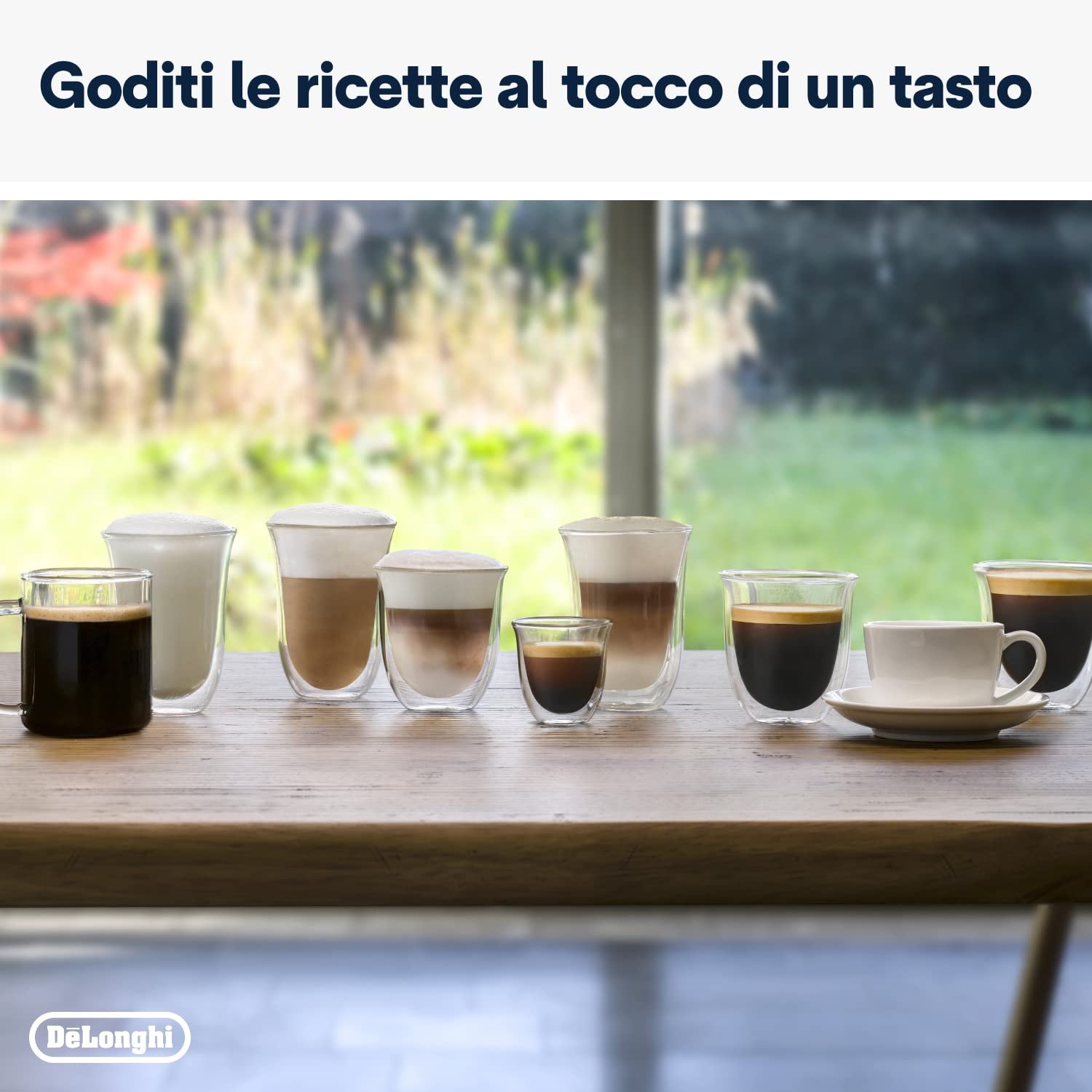 Bring the café home with the DeʼLonghi Dinamica ECAM350.15.B. From fresh-ground espresso to creamy cappuccinos, it handles coffee and milk drinks at the touch of a button, with a 1.8 L water tank and powerful 1450 W Thermoblock heating.