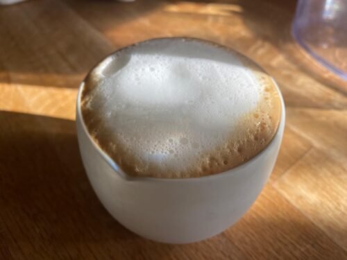 • Milchschaum funktioniert mit der Maschine auch fantastisch, dafür muss man nur darauf achten, dass das Milchkännchen und die Milch immer kalt sind, damit man mehr Zeit hat den perfekten Schaum zu machen. Man muss auch gar nicht in der Milch „rumrühren“, sondern es reicht die Milch „rollen“ zu lassen. Also sie rollt an der Düse und rührt sich damit selbst die dicken Blasen unter. Wenn das Milchkännchen unten so heiß ist, dass man es nicht mehr anfassen kann, ist sie heiß genug. Wer zulange schäumt, macht die Süße in der Milch kaputt.