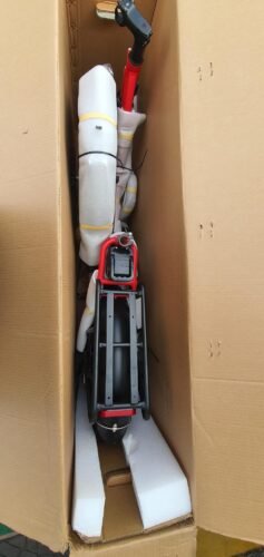 Box was damaged and taped up. missing parts for front wheel assembly. Talked to Engwe already and will be sending parts soon hopefully.