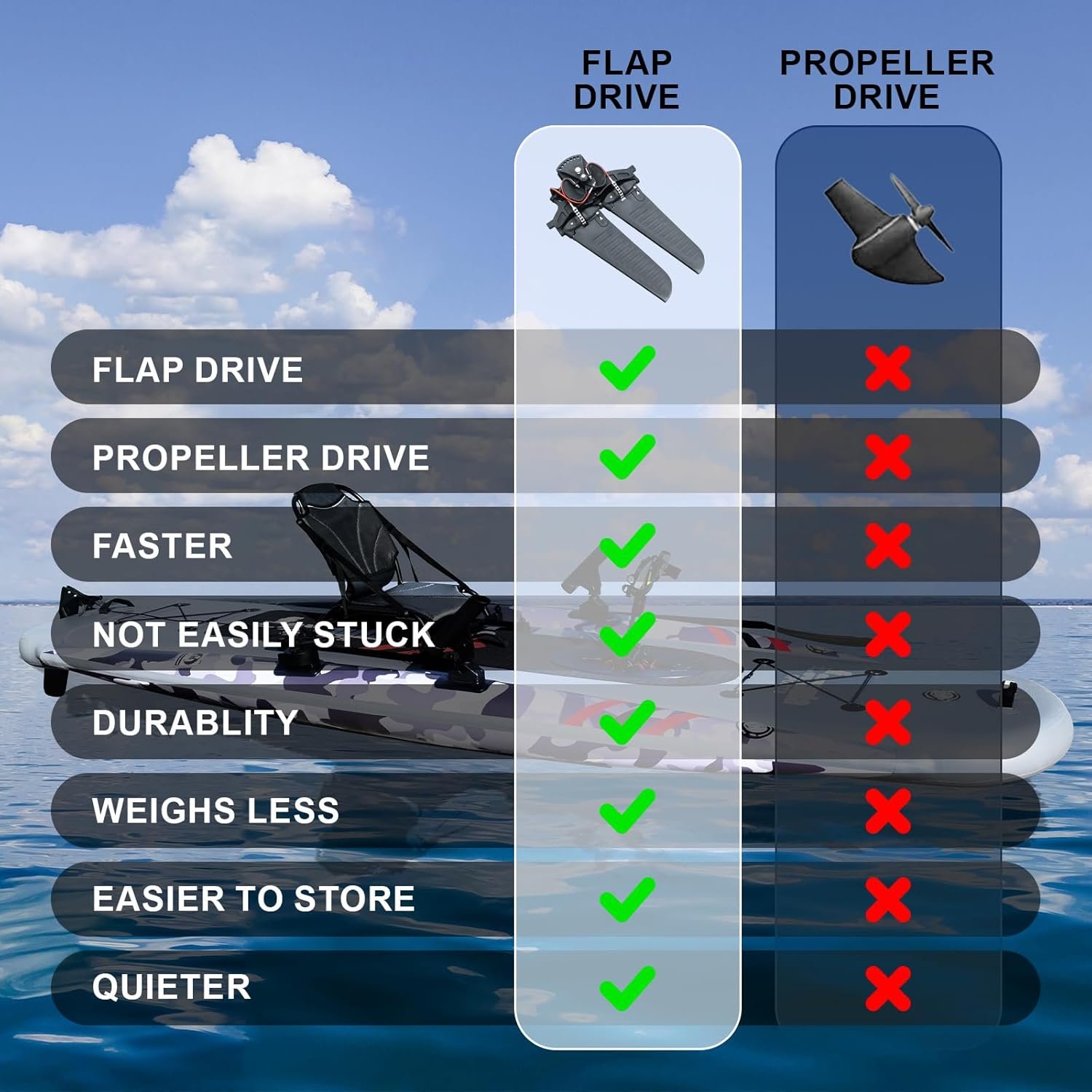 - Hands-Free Pedal Drive System: Ergonomic, continuous-motion pedals power the rear propeller, reducing upper-body fatigue and allowing you to keep both hands on your rod. Perfect for trolling, drift fishing, or moving between hotspots without constant paddling.