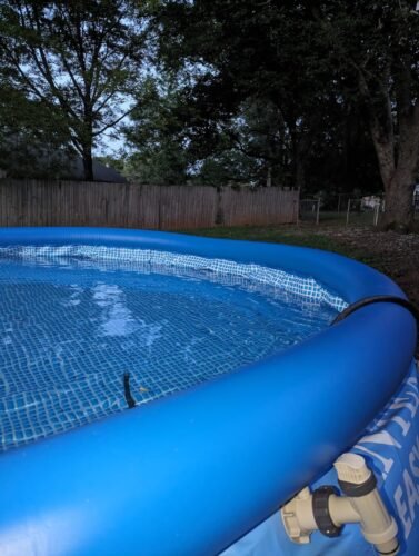Also make sure to purchase the cover for this pool it acts as a solar panel and heats the water up quite nicely and also keeps stuff out of the pool. We think it is totally worth the price