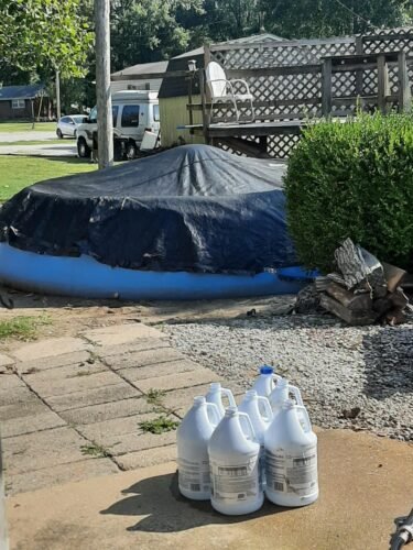 • Purchase the Pool Cover to help keep the pool clean of leaves, insects, grass and misc debris that can accumulate. When it comes to rain it’s strong enough to handle most rain accumulation. DO NOT try to take off the cover with water standing on it. You have to bail or vacuum it off in order to keep the pool water clean. In times of heavy rain I take the cover off prior to the storm.