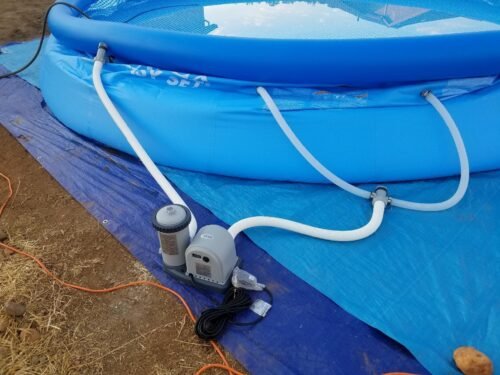 Our first real pool as adults, so setting up the pump took about 20 mins. We wanted to make sure we got it right.