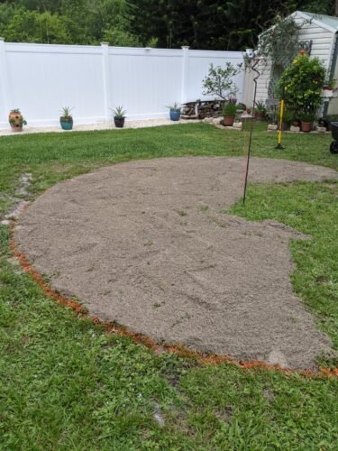 We didn't have to do much ground prep, the space we used was a play area filled with sand long ago the previous owners of the let grass grow over ..