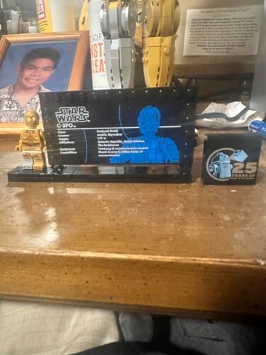 - Exclusive Minifigure & Anniversary Brick: Includes a LEGO C-3PO minifigure, commemorative 25th anniversary LEGO Star Wars brick, and a printed information plaque on a custom display stand.