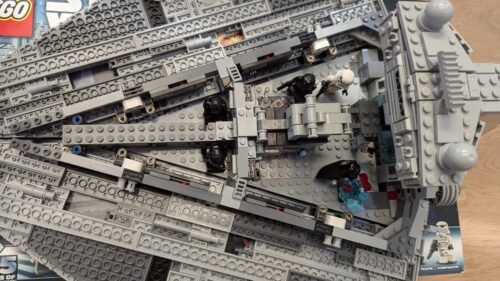 - 🎮 Fully Accessible Interior: The build includes lift-off panels for hands-on play with the bridge, command center, armory, control panels, and even a break room and cargo area with Kyber Crystal and thermal detonators.