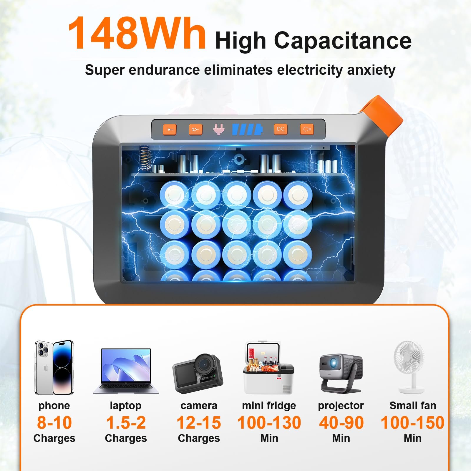 Perfect for: Camping, home backup, RVs, hunting, fishing, travel, power outages, and outdoor activities.