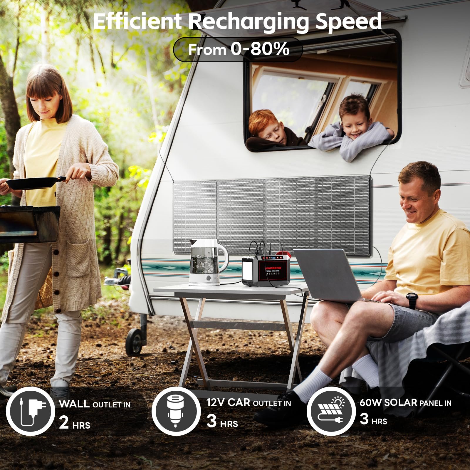 Designed with the adventurer in mind, the MARBERO Portable Power Station is incredibly lightweight and compact. Weighing just a few pounds and featuring a sturdy handle, it’s easy to carry and store in your backpack, car, or RV. Whether you’re camping in the wilderness, road-tripping across the country, or preparing for a power outage, this portable power station ensures you have reliable power wherever you go.