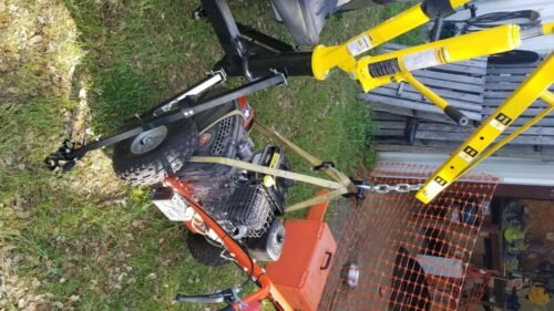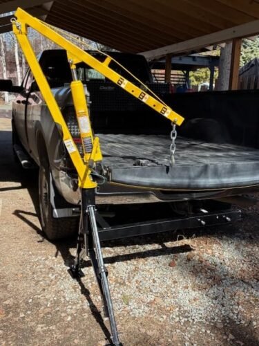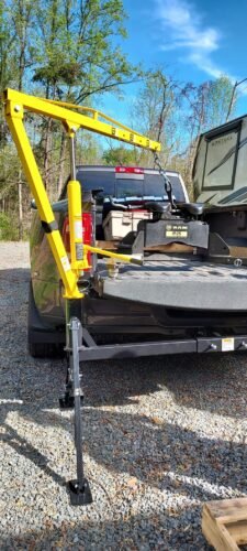 So, I bought this Maxxhaul hitch-mounted crane. And it works pretty slick. I will say that it's way heavier than I expected ... but that can't really be avoided: it's lifting heavy stuff, so it has to be pretty heavy duty, itself. And, even when "broken down" for traveling, it's still a bunch of pieces. But it all goes together pretty quickly -- maybe takes me 2 minutes to set it all up on-site, and another 2 to take it apart when I'm done.