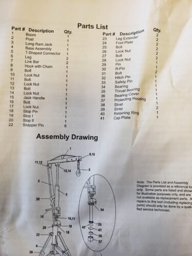 This crane worked beautifully. However, it is HEAVY; I had to take it apart to lift it onto my trailer.