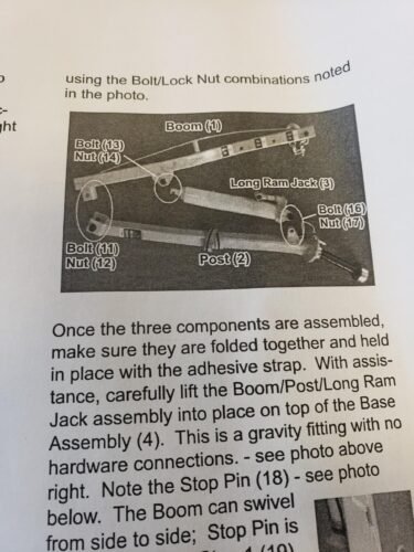 1) When I received the box, it was not badly damaged, but was pretty dinged up. Upon opening it, I found a loose nut, bolt and washer laying inside the packing material. This turned out to be one of the bolts for assembling the hoist arm. I had doubts that all the pieces were in the box when I opened it.