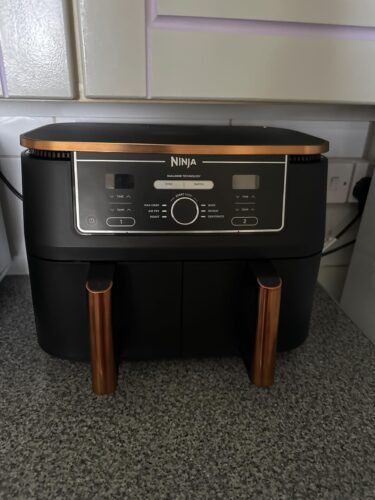 - What’s in the Box: Ninja Dual Zone Air Fryer, 2 x 3.8L non-stick drawers, 2 x crisper plates, UK plug, and a Chef-created recipe guide.