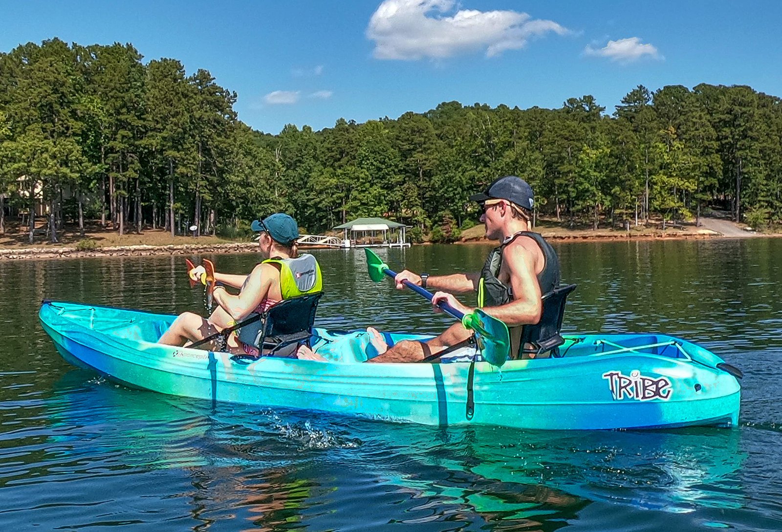 • Unleash unmatched adventures with our 2 person sit-on-top kayak. Proudly made in the USA, this kayak is designed for easy paddling and supports up to 500lbs, making it a perfect choice for both beginners and seasoned kayakers.