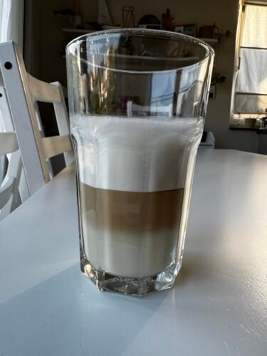 Würde zuerst der heiße Kaffee einlaufen,danach Milch/Milchschaum, dann wäre die Optik etwas schöner.
