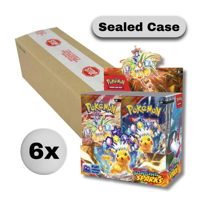 Terawatts of electricity crash down from the sky in a tropical paradise, setting the stage for the supercharged Pikachu ex! With the power of a Stellar Tera Pokémon ex, it lights up the shoreline, revealing a parade of dragon Pokémon led by the towering Alolan Exeggutor ex! Archaludon ex and Latias ex round out the horde, while new ACE SPEC cards and more new Pokémon ex bring surprises of their own. Currents crackle and dragons roar in the Pokémon TCG: Scarlet & Violet—Surging Sparks expansion!