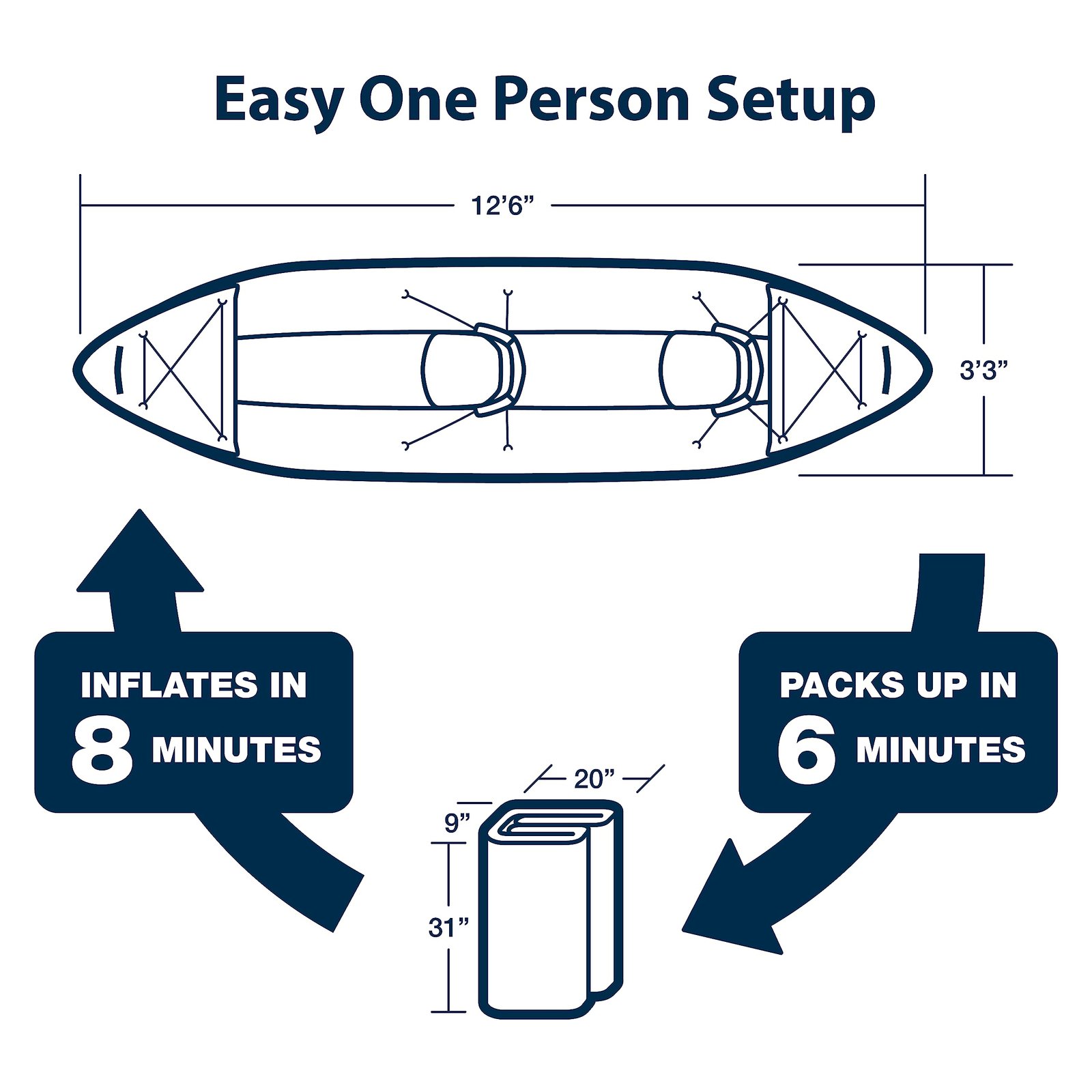 - Three Independent Air Chambers: Starboard, port, and floor chambers provide added safety. Even if one chamber is punctured, the kayak remains partially buoyant.