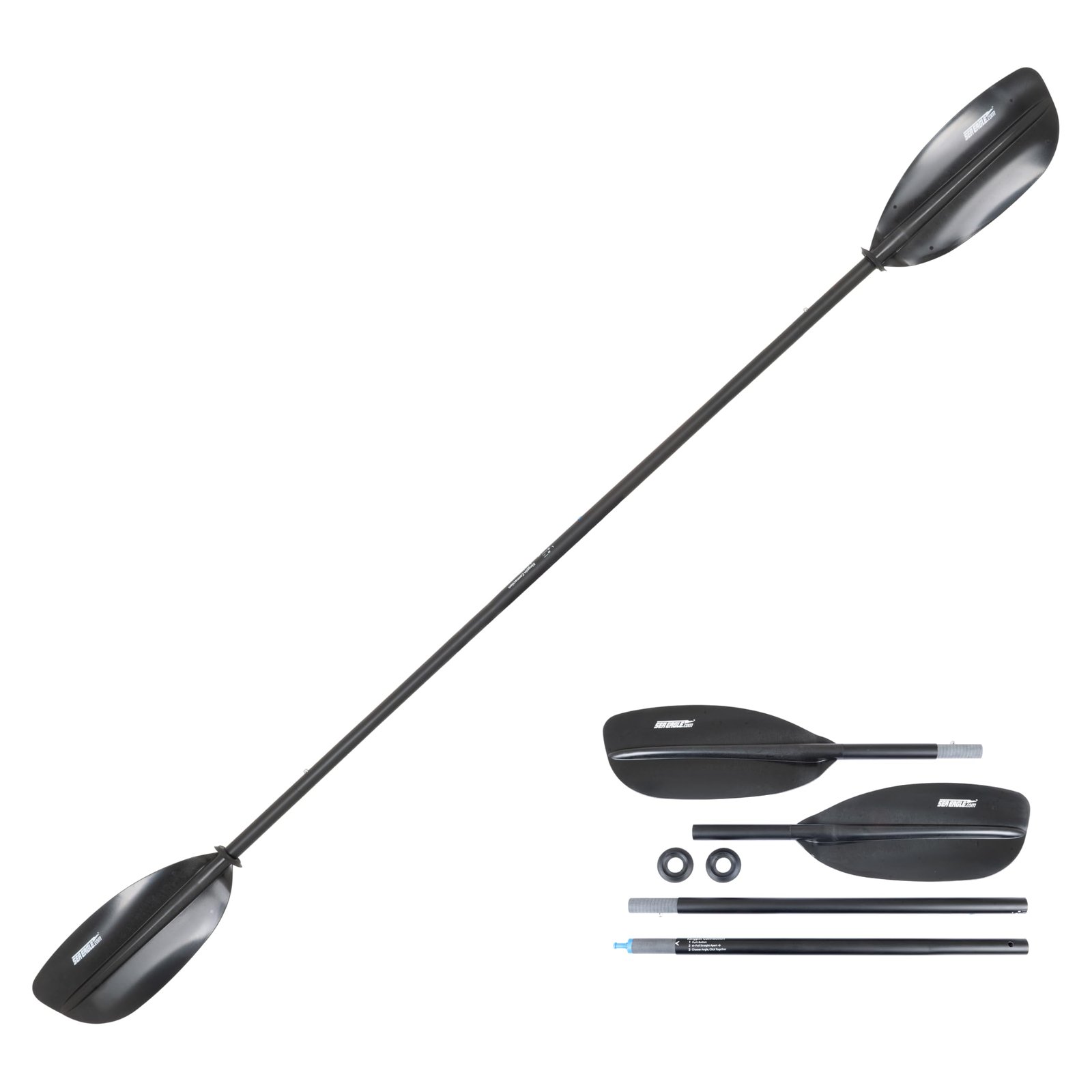 - Paddle: AB40 4-Part, Aluminum Shaft, Fiberglass-Reinforced Nylon Blades, 2.4 lbs, 94.5″ Length