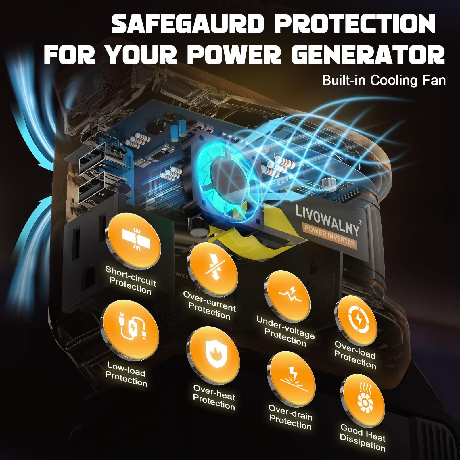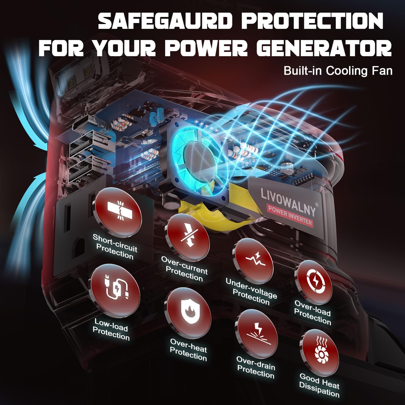 - Advanced Protection – Safeguards against over-load, over-voltage, under-voltage, short-circuit, over-heat & low-load shutdown.
