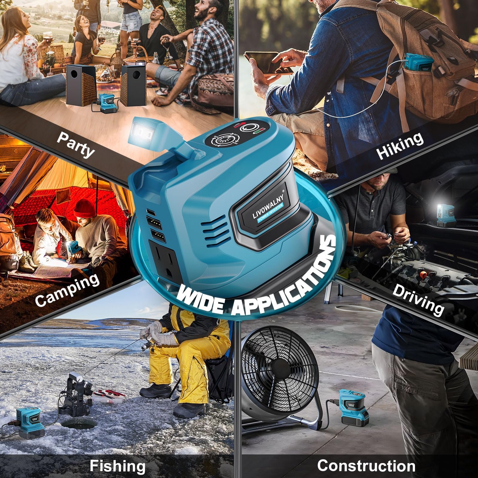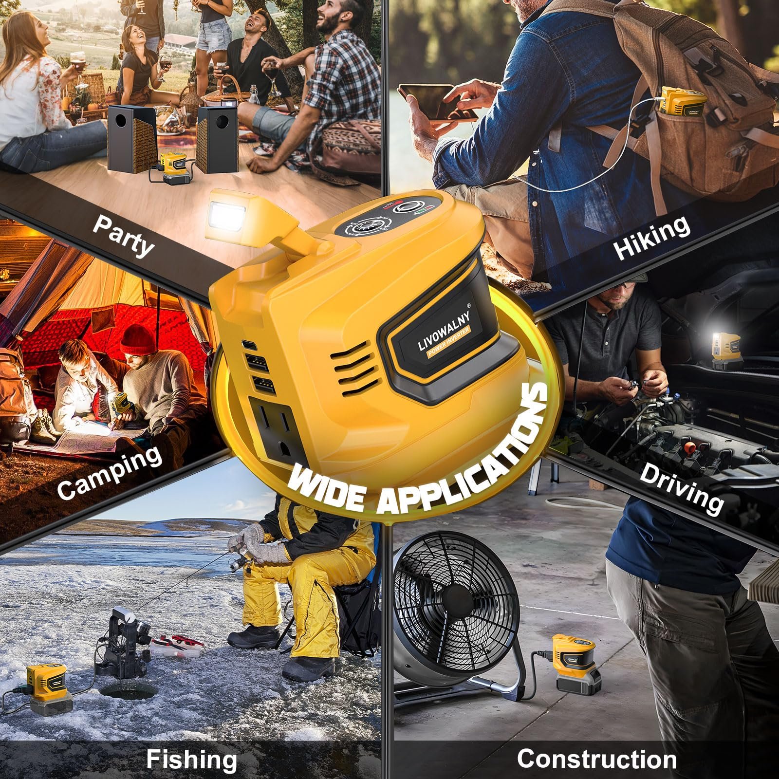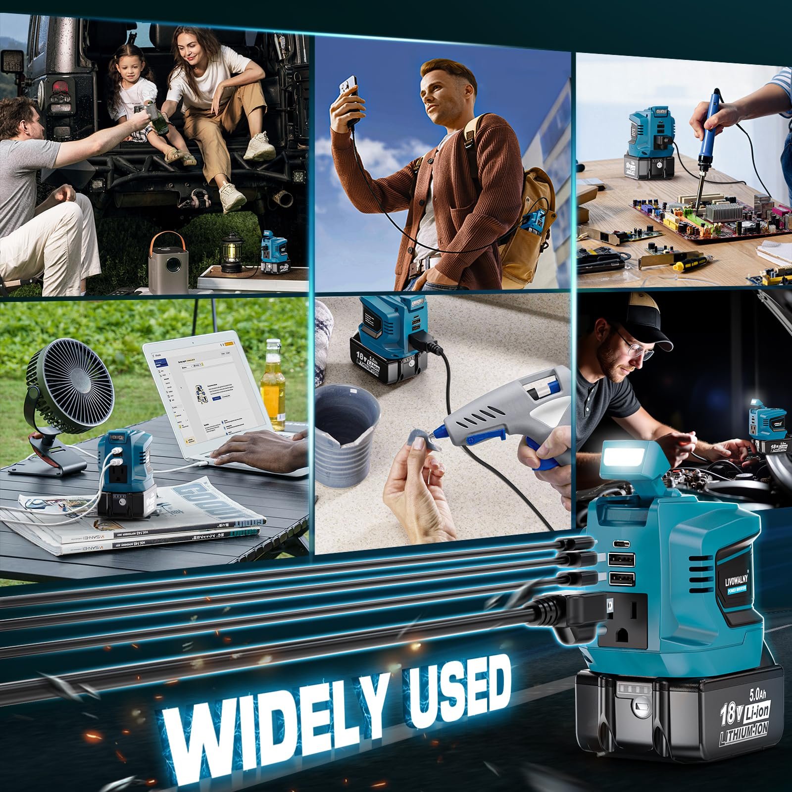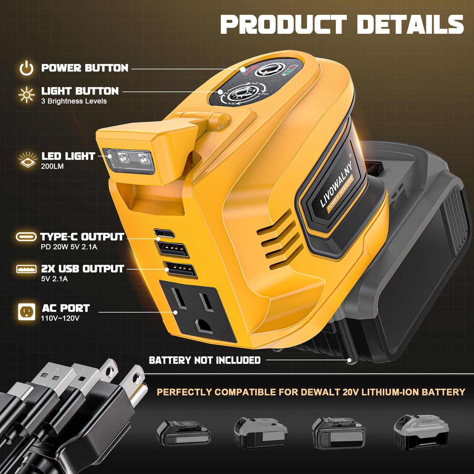 10 reviews for 200 W Power Inverter for DEWALT 20 V Batteries – DC 20 V → AC 110 V Pure Sine Wave, Portable Battery-Powered Generator with 1 AC Outlet, 2 USB-A, 1 USB-C & 200 LM LED Work Light