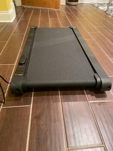 Absolutely satisfied with this purchase for someone whose job requires them to sit a majority of the day, it is fantastic to have this portable treadmill. The only thing I wish I could say was that it was wireless but hey, beggars can’t be choosers. When I come home, I am super excited to use it to get my daily exercise as it really is quiet in my personal opinion so I can even get a quick walking session at night when my family is sleeping. I do like the LED display on the treadmill it self to show me my walking count. For me, the sped is just right to allow me to get a good exercise and not fell unbalanced as some say I can be clumsy. lol. Overall, good investment especially for me and my job that has a lot of sitting.