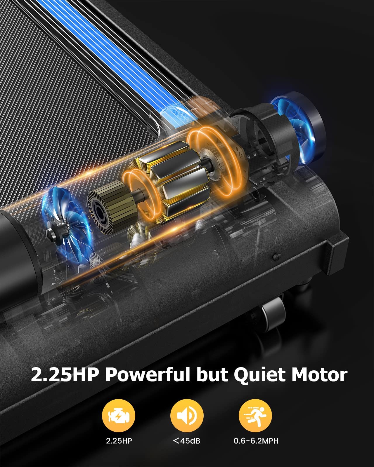Quiet & Powerful Motor: The 2.25HP motor is surprisingly quiet, even when running at higher speeds. It’s powerful enough for walking, jogging, and even light running, making it versatile for various fitness levels.